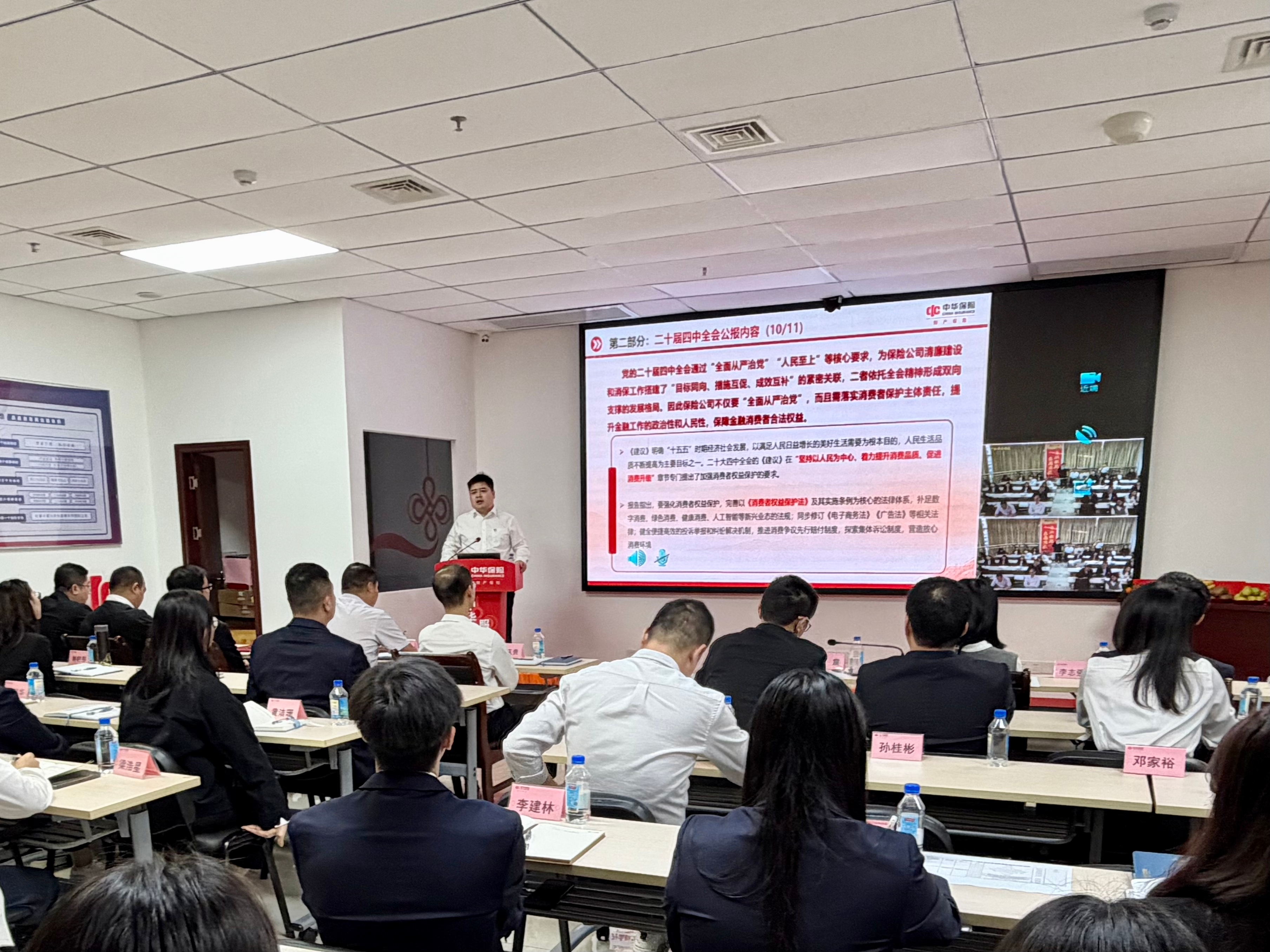 为进一步做好消费者权益保护工作,助力营造和谐健康的金融消费环境牛领策略,11月14日,中华财险肇庆中心支公司围绕二十届四中全会精神,结合“党建+消保”工作模式开展消费者权益保护知识专题授课,中支全体干部员工参加培训。